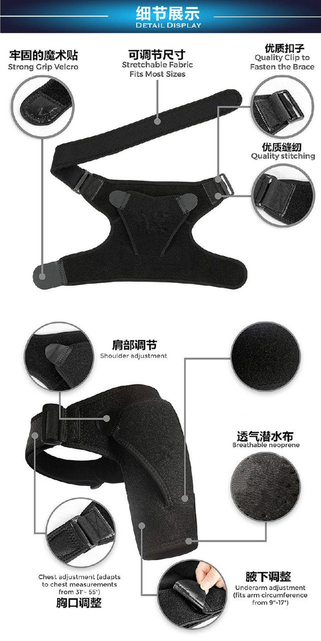✅ Технологічні матеріали: наплічний бандаж виготовлений із повітропроникного неопрену, ПУ і нейлону, які забезпечують вологопоглинання та регулювання тепла. Ці матеріали сприяють комфортній посадці та забезпечують заспокійливе тепло.