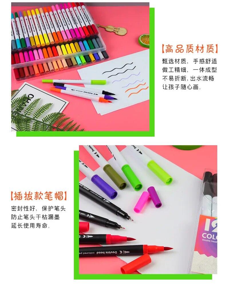 Подвійні наконечники: Кожен маркер у цьому наборі обладнаний двома наконечниками — лайнером і маркером-пензлем. Лайнер має товщину пера 0,4 мм, що підходить для тонких ліній і деталей, тоді як маркер-пензлик дає змогу створювати ширші лінії, а також каліграфічні написи.