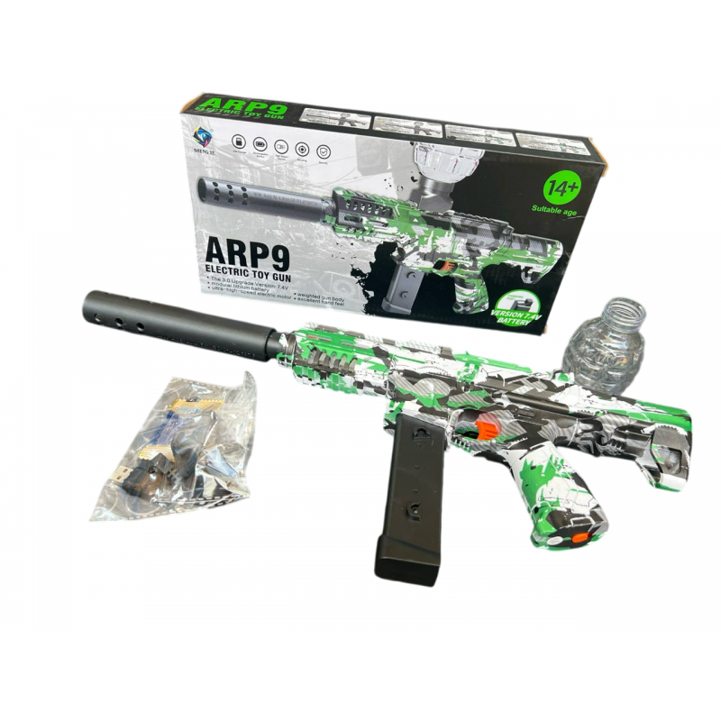 Іграшковий автомат ARP9 Electric Toy Gun — електропневматичний бластер з акумулятором 7.4V і подачею гелевих кульок. Яскравий дизайн, USB-зарядка, безпечний для дітей від 14 років.